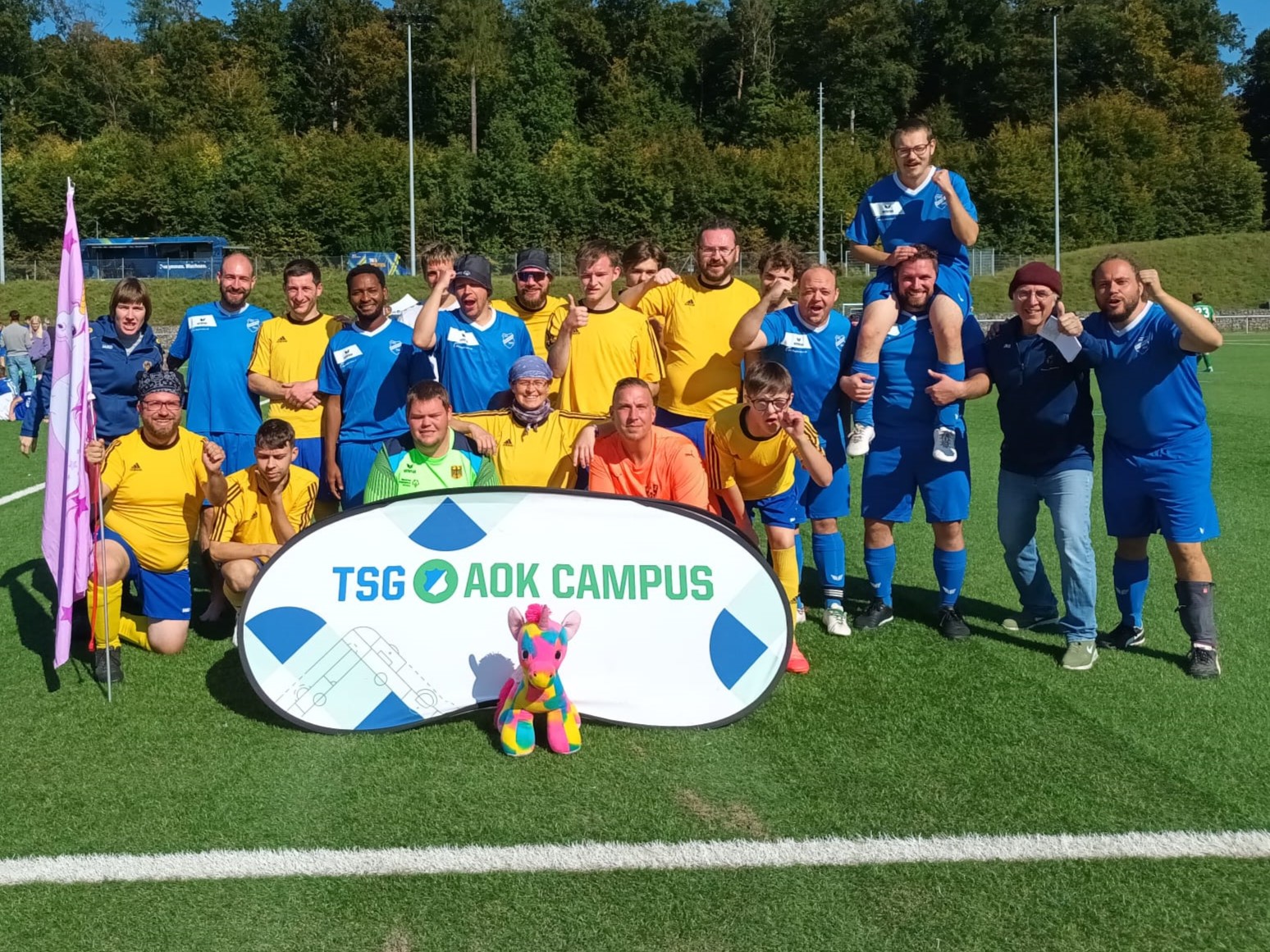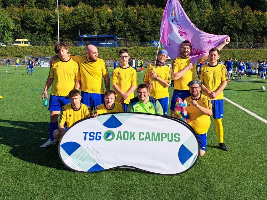 Am 01.und 02. Oktober trafen sich wieder die besten Unified-Mannschaften aus Baden-Württemberg auf dem Gelände der TSG Hoffenheim. Auch zwei Mannschaften der Sportkooperation TSG Wilhelmsdorf/Die Zieglerschen waren am Start. Die Vorfreude der FußballerInnen war groß und das Wetter meinte es gut mit den Teams. Strahlender Sonnenschein und angenehme Temperaturen sorgten für optimale Bedingungen bei den Qualifikationsspielen am Mittwoch. Die Nacht verbrachten die Wilhelmsdorfer wieder in der Turnhalle der Johannes Diakonie Mosbach, mit deren Fußballern seit Jahren eine gute Freundschaft besteht. Pizza, Lagerfeuer, Champions League und gute Gespräche sorgten für einen super Teamzusammenhalt. Am Donnerstag standen dann die Finalspiele an. Die Unicorns hatten in Gruppe C mit sehr starken Gegnern zu kämpfen, doch die Mannschaft gab nicht auf und erkämpfte sich Punkt um Punkt. Am Ende stand ein beachtlicher dritter Platz. Bei den Dragons verlief der Tag auch nicht nach Plan. Am Mittwoch noch ungeschlagen, musste gleich in der ersten Finalpartie eine Niederlage hingenommen werden. Aber auch sie gaben nicht auf und gewannen schließlich Bronze in Gruppe A. Alle mit einer Medaille um den Hals, ging es zurück nach Wilhelmsdorf.