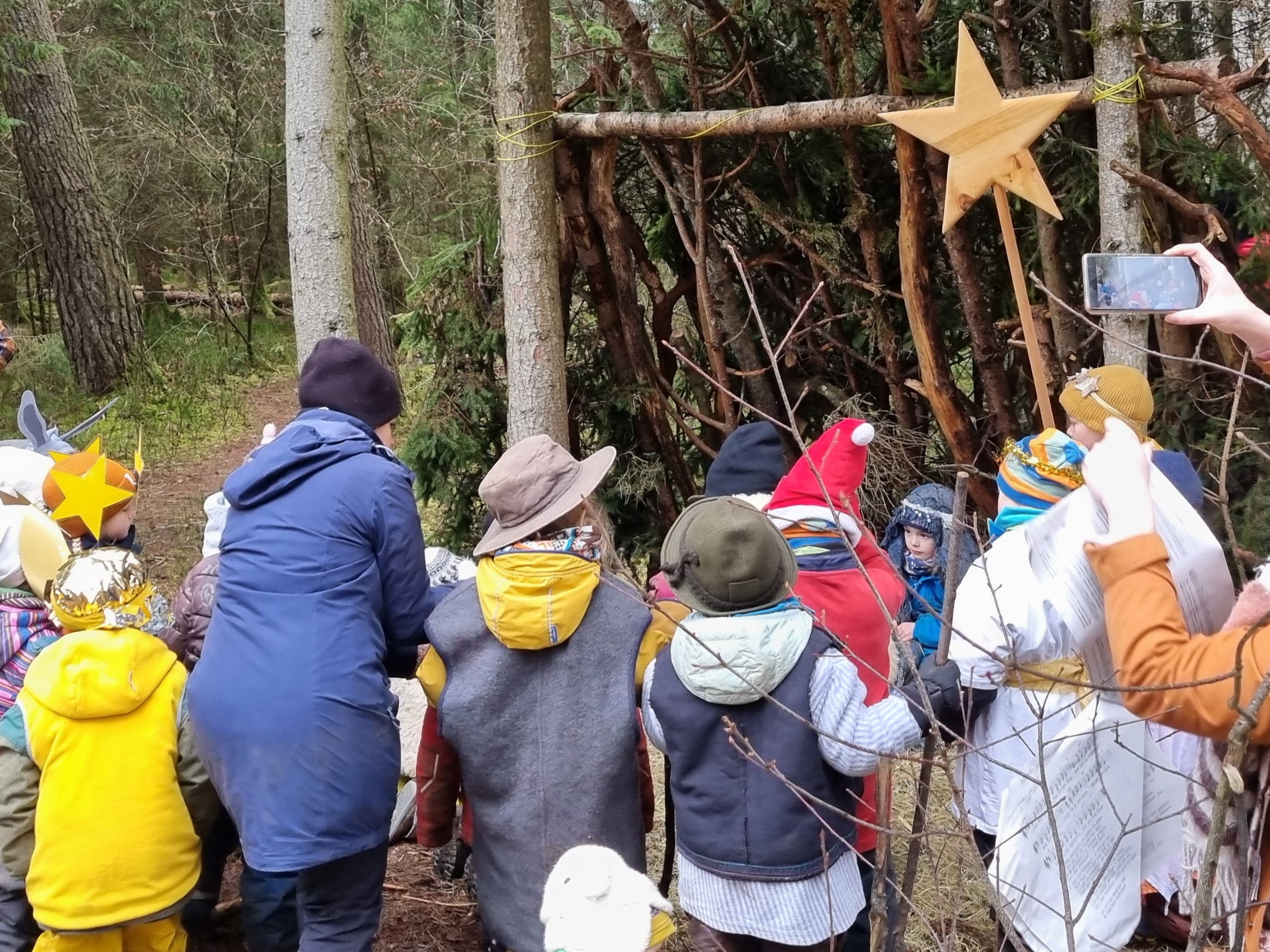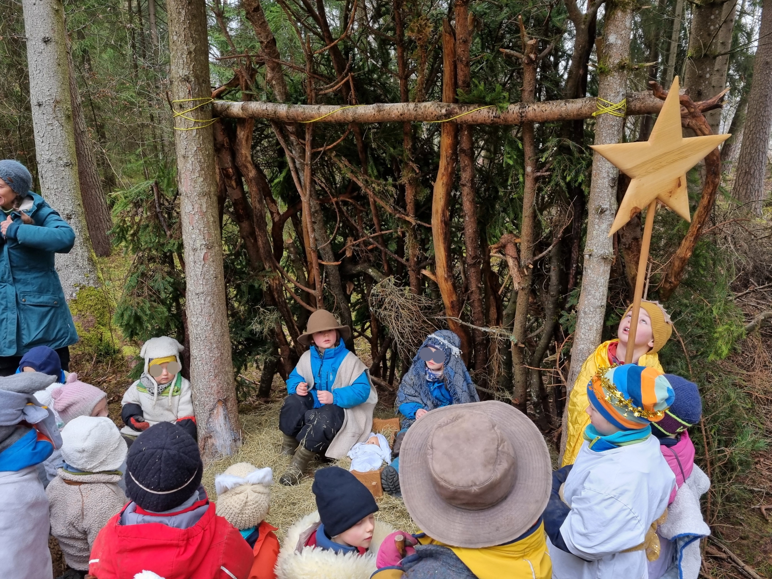 Am Vormittag des 19.12.25 führten die Kinder des Waldkindergartens ihr liebevoll vorbereitetes Krippenspiel im Wald auf. Umgeben von winterlicher Waldatmosphäre erzählten sie die Weihnachtsgeschichte mit strahlenden Augen und selbstgebastelten Kostümen.