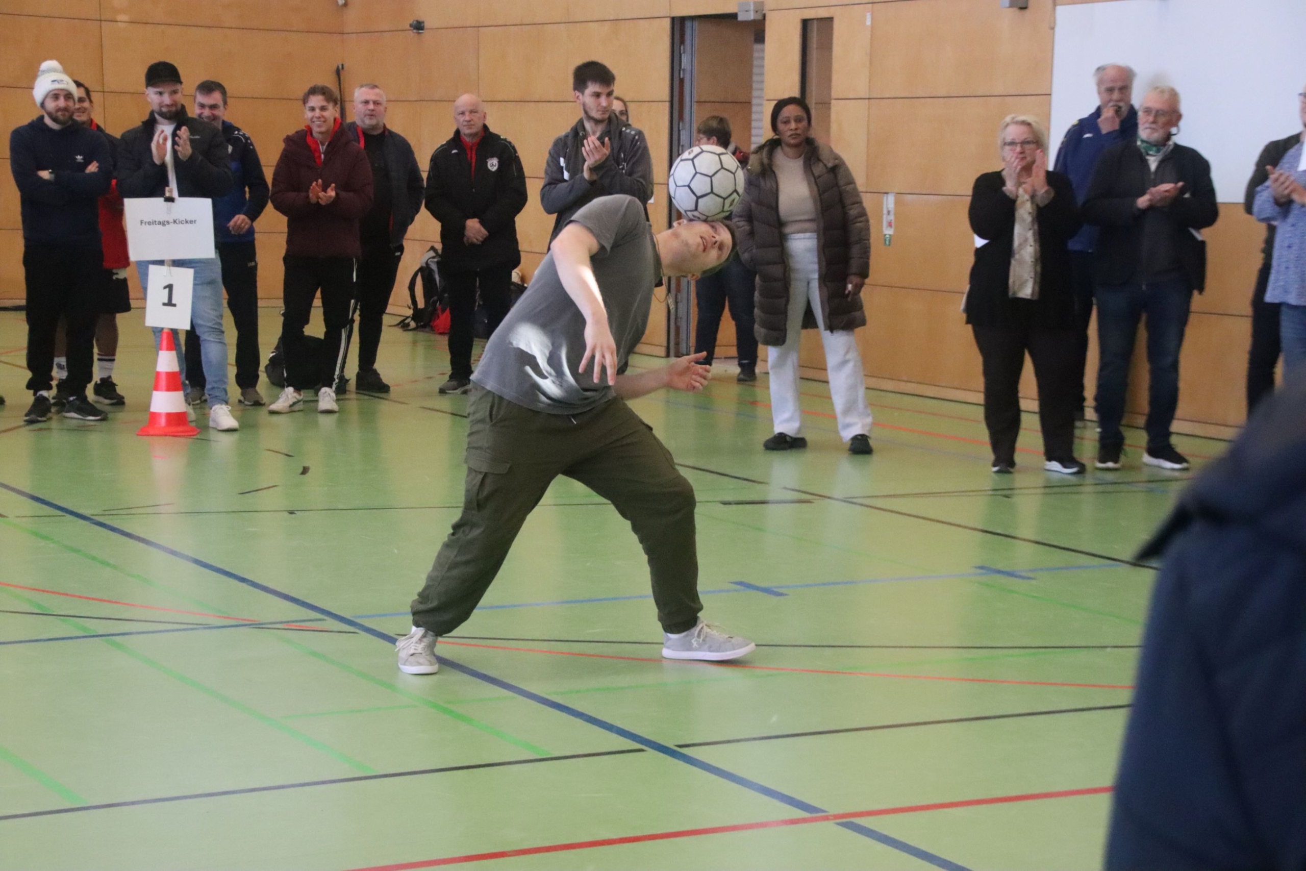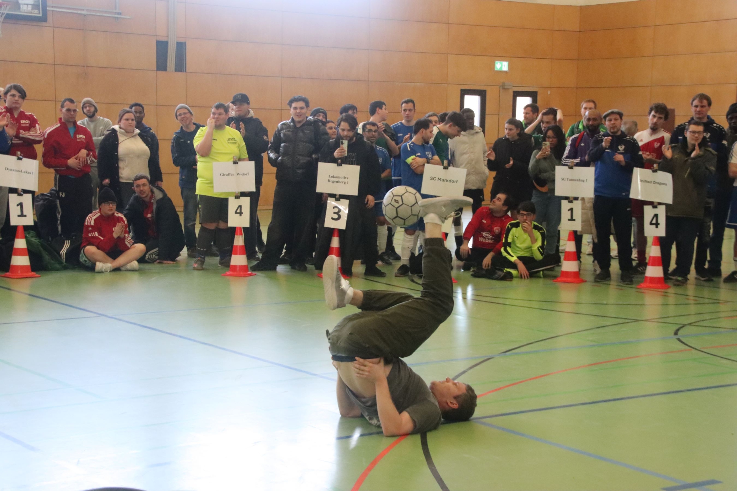 Am Samstag den 07.02. drehte sich in den Wilhelmsdorfer Hallen wieder alles um den Fußball. In zwei Hallen spielten 17 Teams in vier Leistungskategorien um die heiß begehrten Medaillen. Die Sportkooperation TSG Wilhelmsdorf/ Die Zieglerschen war in allen Kategorien mit einer Mannschaft vertreten. In Kategorie A fand zum ersten Mal ein Unified- Hobby- Turnier statt, da es neben den Wdorf Tigers keine weiteren Anmeldungen gab. Das vom Aktion Mensch geförderten Projekt Sport.Vereint war für die Ausrichtung des Unified Hobby Turniers maßgeblich beteiligt und sorgte bei den zahlreichen Zuschauern für reichlich Applaus. In beiden Hallen sorgte das Team Hawaii der Zieglerschen für Verpflegung und auch Nervennahrung für SpielerInnen und TrainerInnen. Nach der gemeinsamen Eröffnungsfeier starteten die Partien. In Kategorie D konnten sich die Grashoppers Wdorf einen hervorragenden 2. Platz sichern und dürfen damit ins Landesfinale nach Stuttgart fahren. Die Wiesel Wdorf erkämpften sich einen guten 3. Platz in Kategorie C und die Giraffen Wdorf wurden 4. In Kategorie B. Bei der Siegerehrung wartete dann noch eine Überraschung auf die Teams, der Fußball-Freestyler Ralf Krich zeigte sein Können und sorgte für Große Augen bei den Teilnehmern.